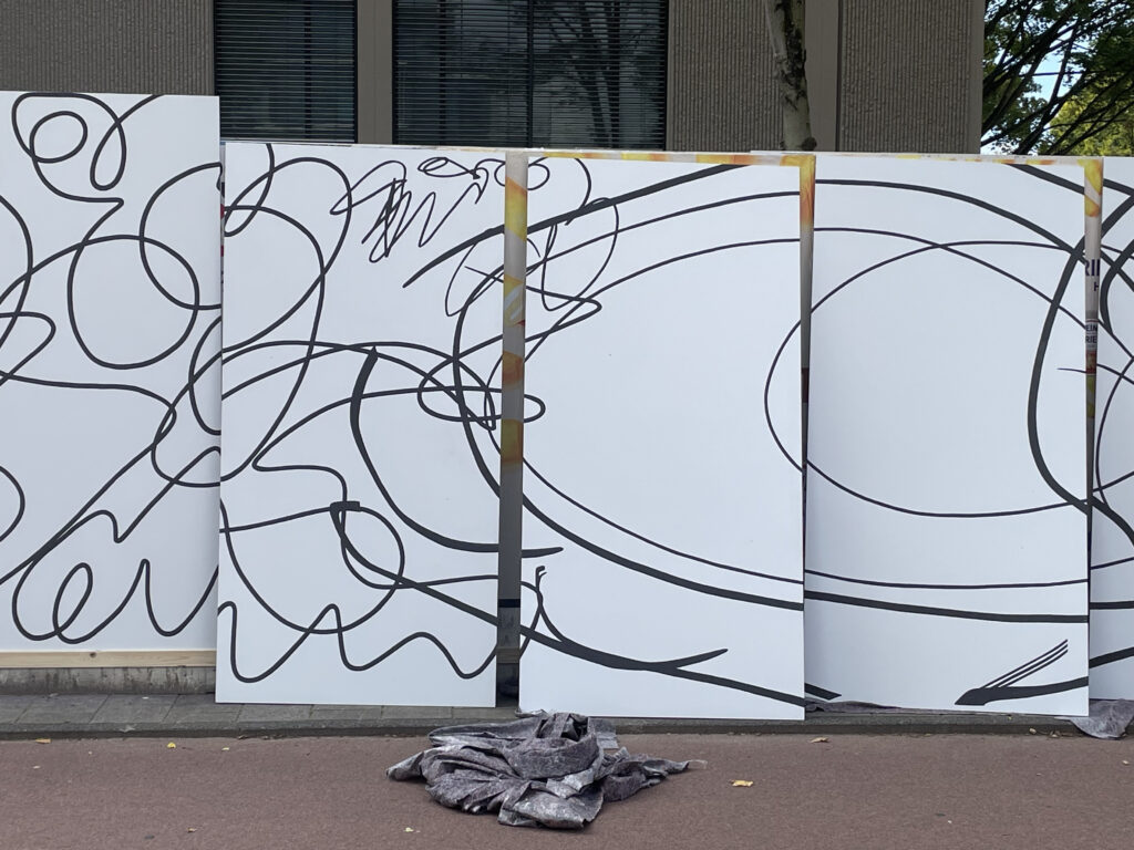 De ene uitvoering beslaat alle wanden van Galerie Van Gelder en is daar te zien tot en met 26 april 2026. De andere is gemaakt in opdracht van de Hartwig Art Foundation. Dit is een schildering van 92 x 2,45 meter, op 77 panelen die een scheidingswand vormen tussen het fietspad en de voormalige rechtbank aan de Parnassusweg dat de komende jaren wordt verbouwd voor het Hartwig Museum.