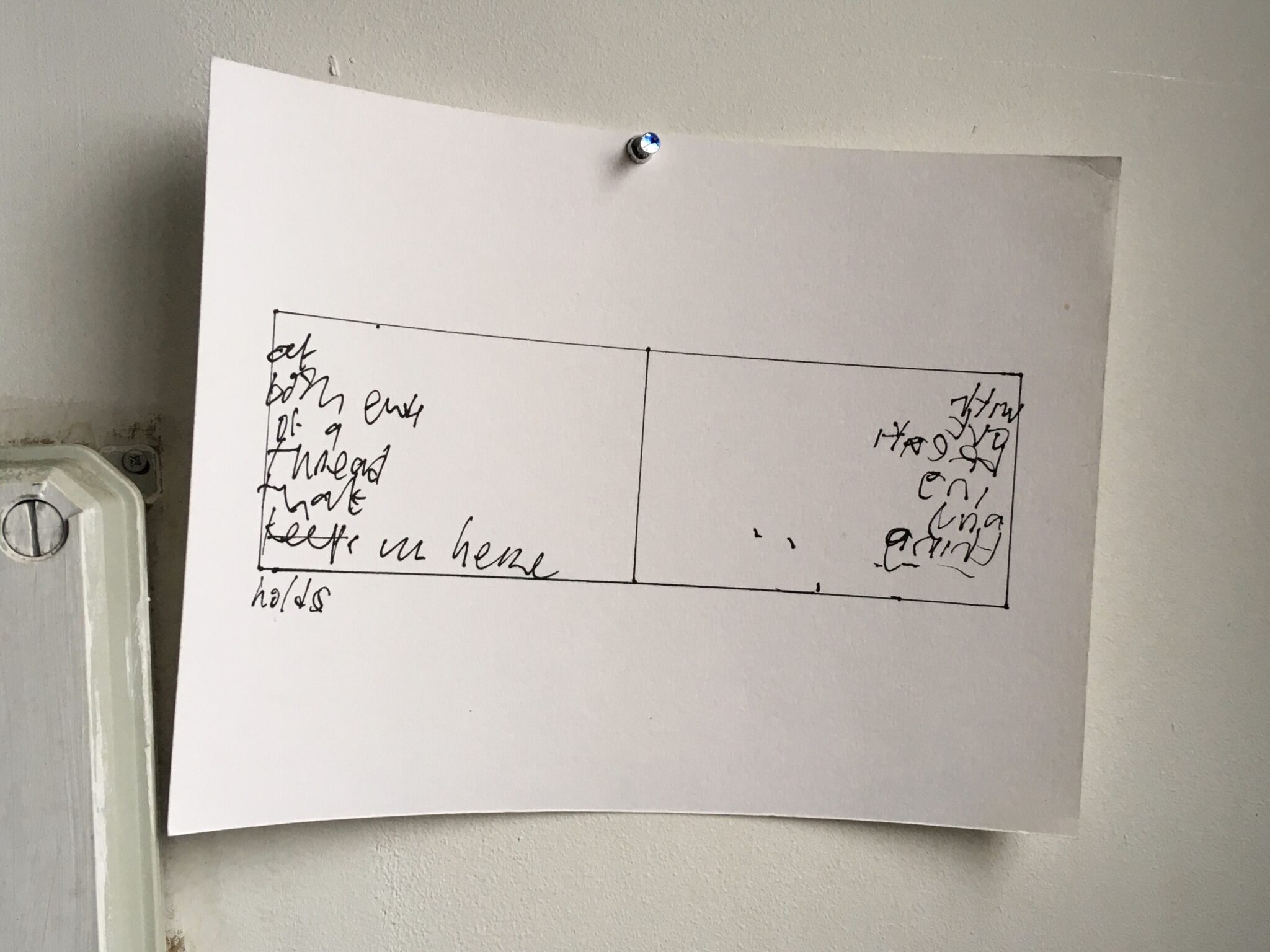 Foto (schets): Tim Ayres, ‘At both ends of a thread that keeps holds us here / Without breaking anything (2020)